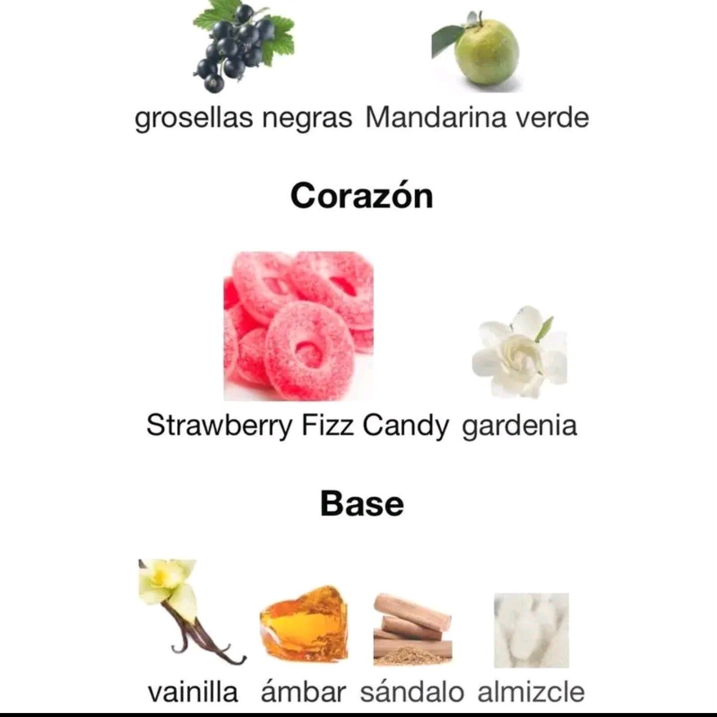 Poco después, entra la fase del corazón, jugosa y gourmand: el cartón de “strawberry fizz candy” combina con la flor de gardenia, añadiendo una dimensión cremosa-dulce floral que suaviza la intensidad frutal, haciéndola más elegante, como una dulce bombonería perfumada.