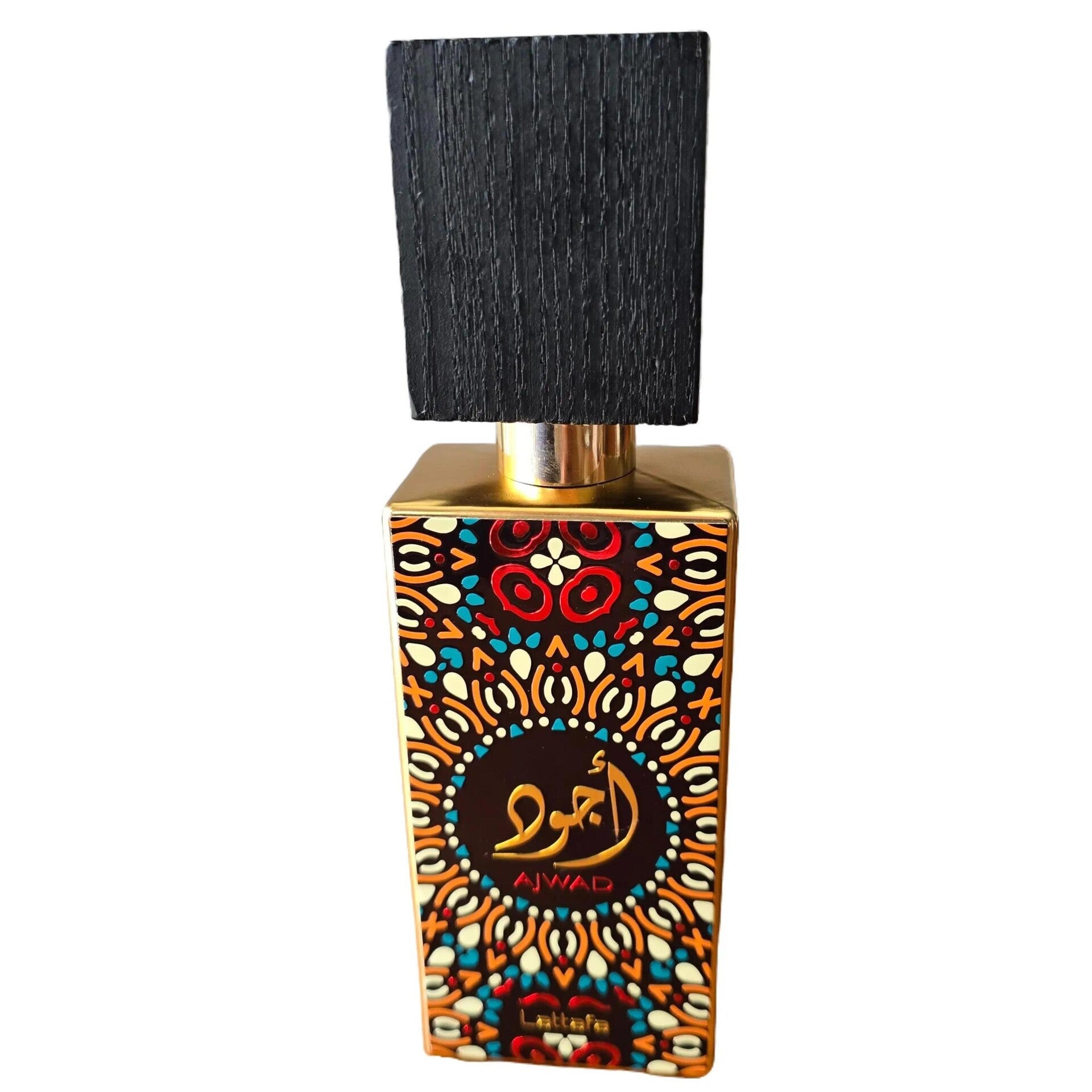 Ajwad de Lattafa es una fragancia que combina con maestría lo afrutado, lo floral y lo amaderado, logrando un perfil olfativo que es a la vez sofisticado, dulce y cálido.