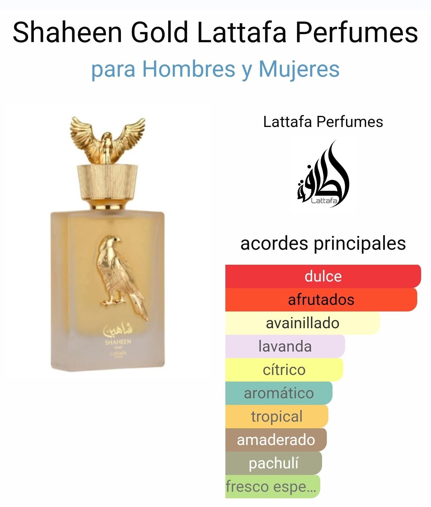 Shaheen Gold es una fragancia que destaca por su versatilidad y su equilibrio entre lo dulce, lo afrutado y lo cálido. Es ideal para quienes buscan un perfume que: